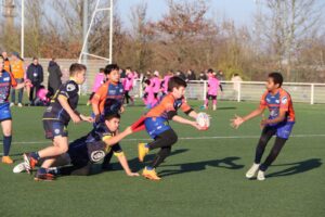 13 décembre 2025 – opposition M10/M12 – 3 victoires pour les M12 – 3 victoires et 2 défaites pour les M10 niveau B – 2 victoires et 1 nul pour les M10 niveau A – Stade Français / UST / USJ / Langeais (crédit photo / vidéo. : Marig Le Guirinec, Sylvie Coulon, Jérôme Legrix)